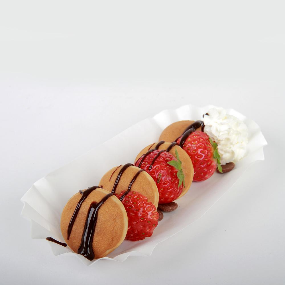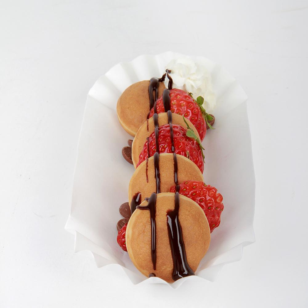Versatile! Serve or Chocolate from the Chocolate Fountains, Fudge Puppies (Chocolate covered Belgian Waffles). Packaged 500 to a case. Individual tray dimensions are: 6" (15.3cm) Long x 3" (7.62cm) wide. Made from Paper.