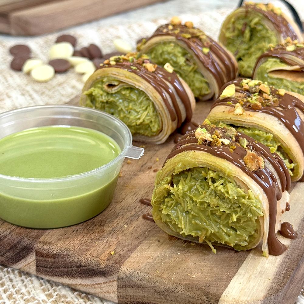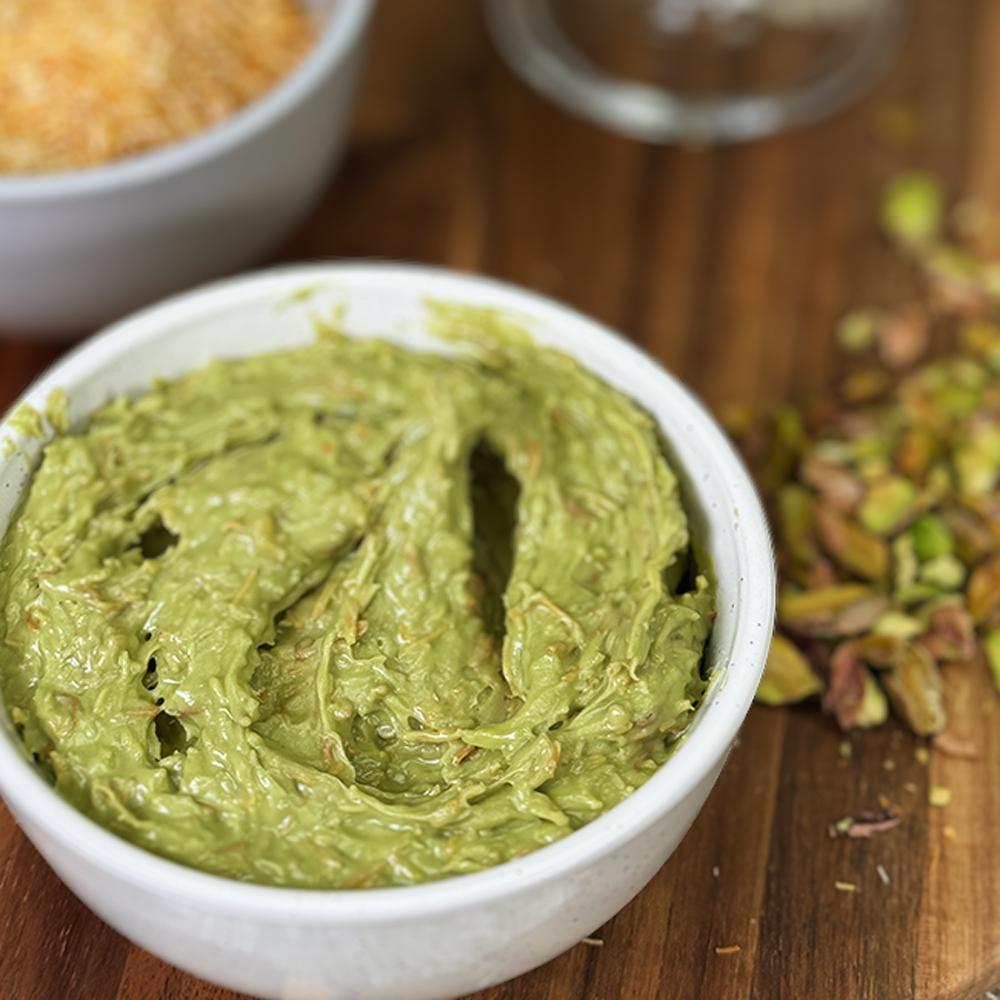 This style of pistachio filling has become popular in Middle Eastern-inspired patisserie and the latest Dubai-style chocolate slabs and croissants, where pistachio and kataifi fillings are layered or piped into rich chocolate shells. Our ready-to-use format makes it simple to add to cakes, pastries, or chocolate bars without the time-consuming preparation.