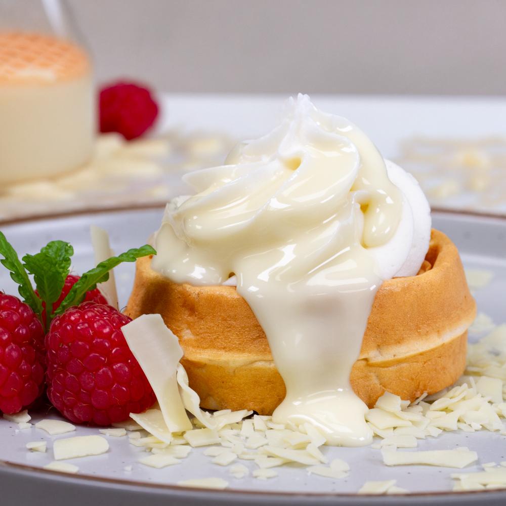 | Pour onto warm waffles or pancakes | Pistachio & White Choc Stack – Fresh waffle with white chocolate drizzle and crushed pistachios. Perfect for more refined menus. |